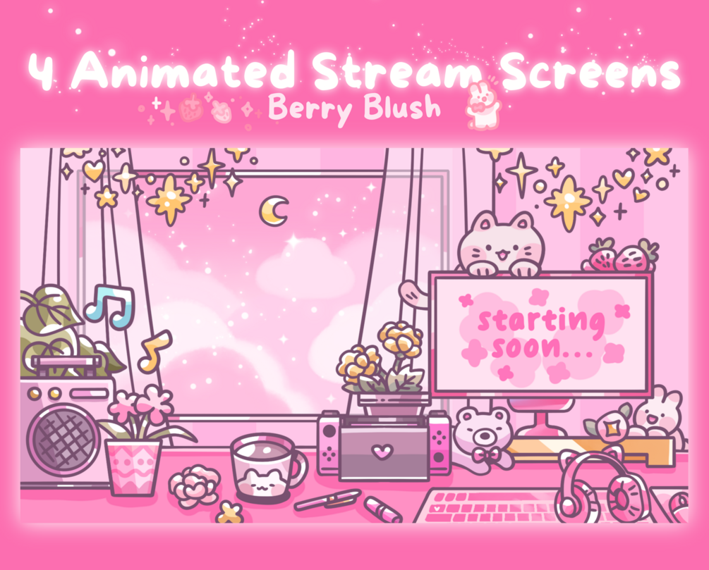 Berry Blush twitch overlay is the perfect way to show off your Twitch/Youtube gaming personality! Level up your gaming profile today with this animated stream overlay!